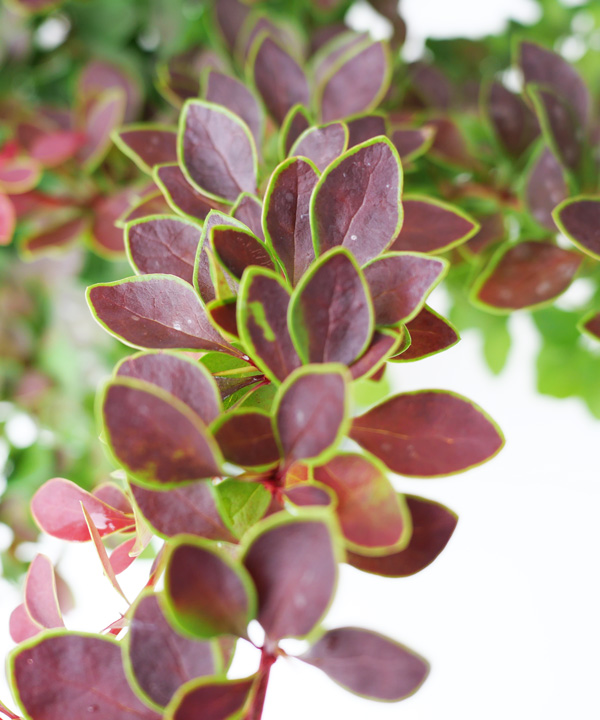 - メギは、美しい葉を楽しむことができる落葉低木です。また、4月頃に花、秋に紅葉も楽しむことができます。メギの大きな特徴は、葉色が他の植物では見られないほど、鮮やかな品種が多数あること。お庭のアクセントや境界で活躍してくれます。枝には葉が進化したトゲがありますので、植え場所に注意が必要です。トゲは防犯や動物の進入を防ぐのに活躍します。メギゴールデンリングは、赤紫色の葉に黄緑色の淵が入る品種で、新芽は紫色で美しく秋も真っ赤に紅葉し、春から秋まで飽きることなく葉色を楽しむことができます。