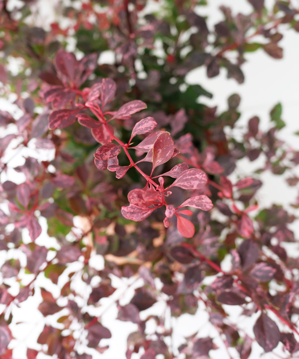 - メギは、美しい葉を楽しむことができる落葉低木です。また、4月頃に花、秋に紅葉も楽しむことができます。メギの大きな特徴は、葉色が他の植物では見られないほど、鮮やかな品種が多数あること。お庭のアクセントや境界で活躍してくれます。枝には葉が進化したトゲがありますので、植え場所に注意が必要です。トゲは防犯や動物の進入を防ぐのに活躍します。メギローズグロウは、中低木では珍しい赤い斑が入る品種で、まるで花が咲いているかのように美しく色づきます。春から秋まで飽きることなく葉色の変化を楽しむことができます。