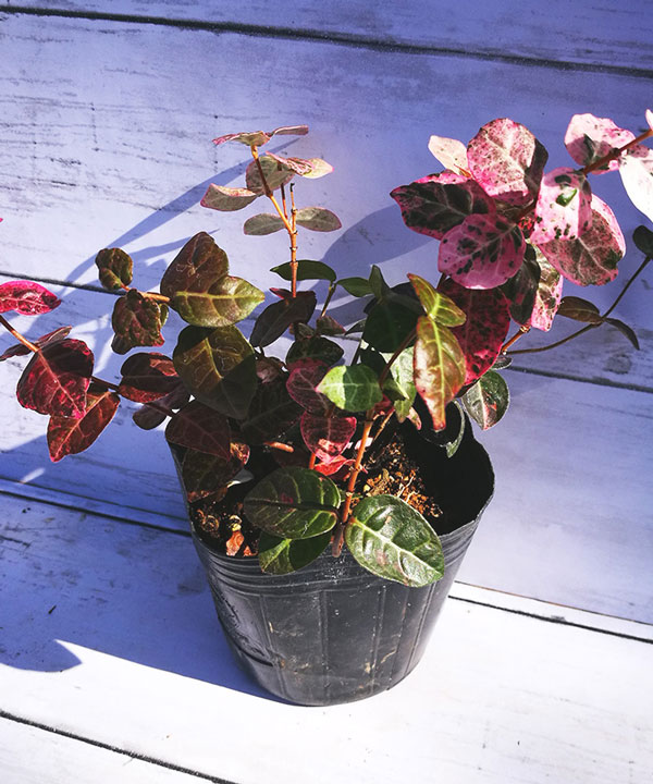 クリーム色の斑が愛らしい。冬は寒さで真っ赤に色づく。