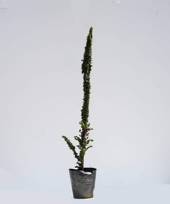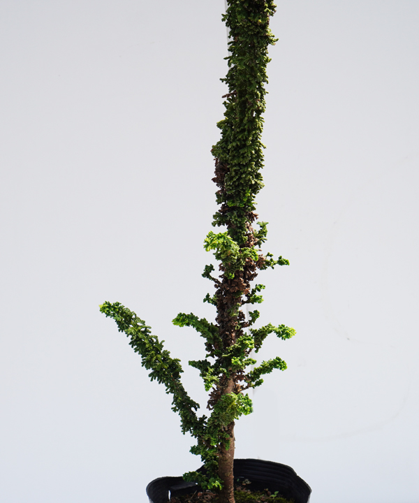 - 大変珍しい新しい形のコニファーです。葉はヒバの葉が縮れたようになり経年でところどころに枯葉が混ざります。枝はひょろひょろと伸びて様々な形になり、木ごとに樹形は大きく変わります。時にはうねうねとサボテンのようになったり個性的でインパクトのあるコニファーです。育て方は特に注意することもなく虫もつきにくいです。まだ生産が始まったばかりのもので生産数は安定しません。