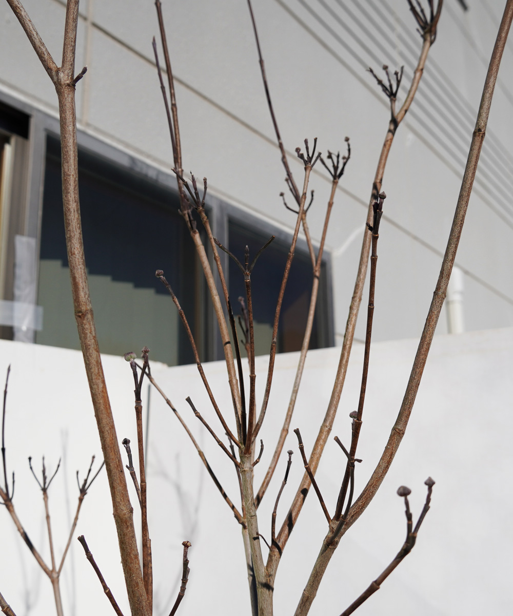- 込み合う枝が出てきたら剪定し、自然樹形を保つようにするとよいでしょう。もし高さを出したい場合は、横に張り出す枝を切り上に伸びる枝を生かすようにします。