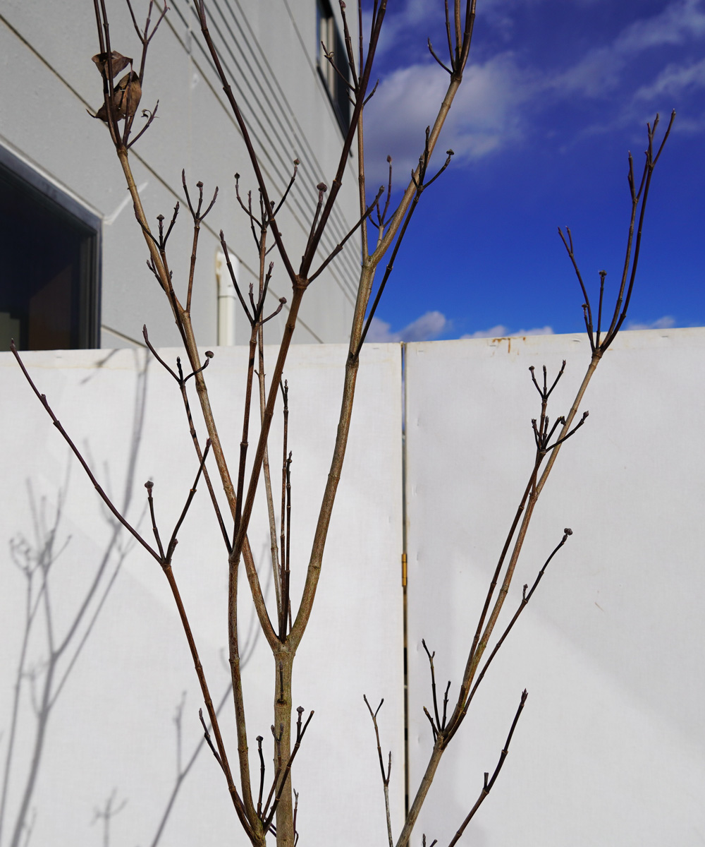 - 込み合う枝が出てきたら剪定し、自然樹形を保つようにするとよいでしょう。もし高さを出したい場合は、横に張り出す枝を切り上に伸びる枝を生かすようにします。