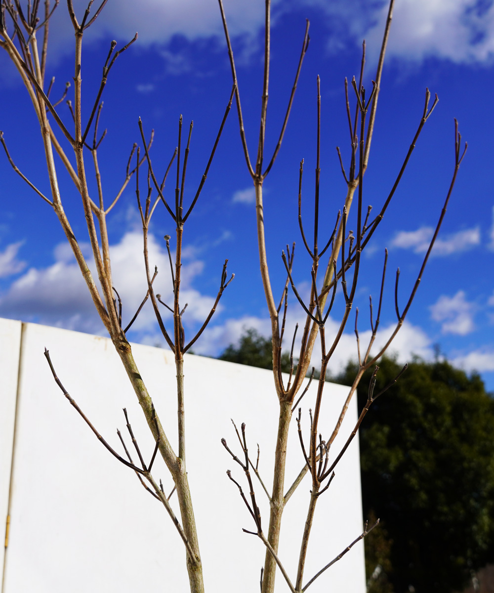 - 込み合う枝が出てきたら剪定し、自然樹形を保つようにするとよいでしょう。もし高さを出したい場合は、横に張り出す枝を切り上に伸びる枝を生かすようにします。