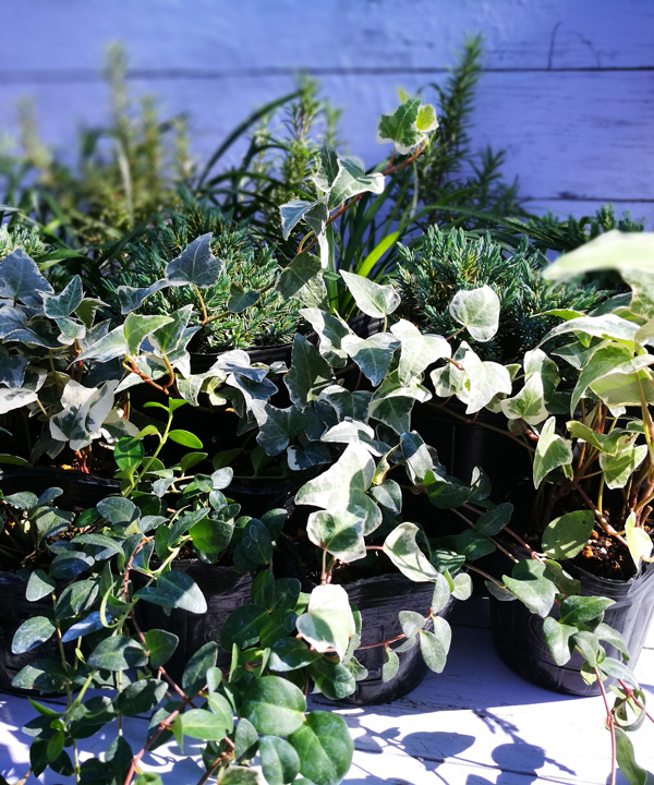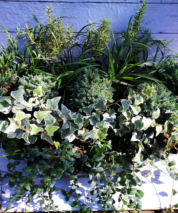 青を基調とした色に染まる品種、寒さに強く冬でも枯れにくい植物たちで織りなすガーデンをぜひ楽しんで頂きたく考案しました。