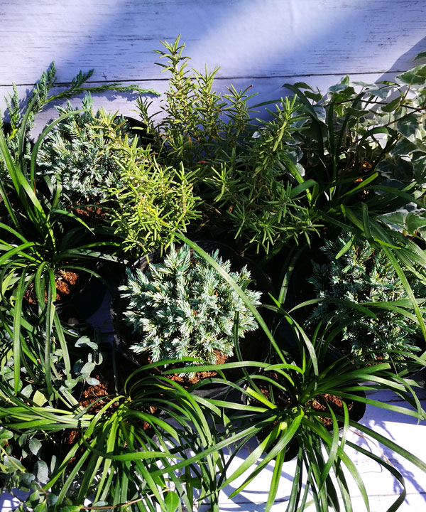 大株になるローズマリーを奥に植えて、手前を低くする。