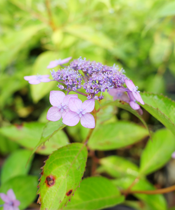 - 小さくて控えめな花が、雑木の庭に華やかさをプラス。花の色は、土壌環境で変わります。