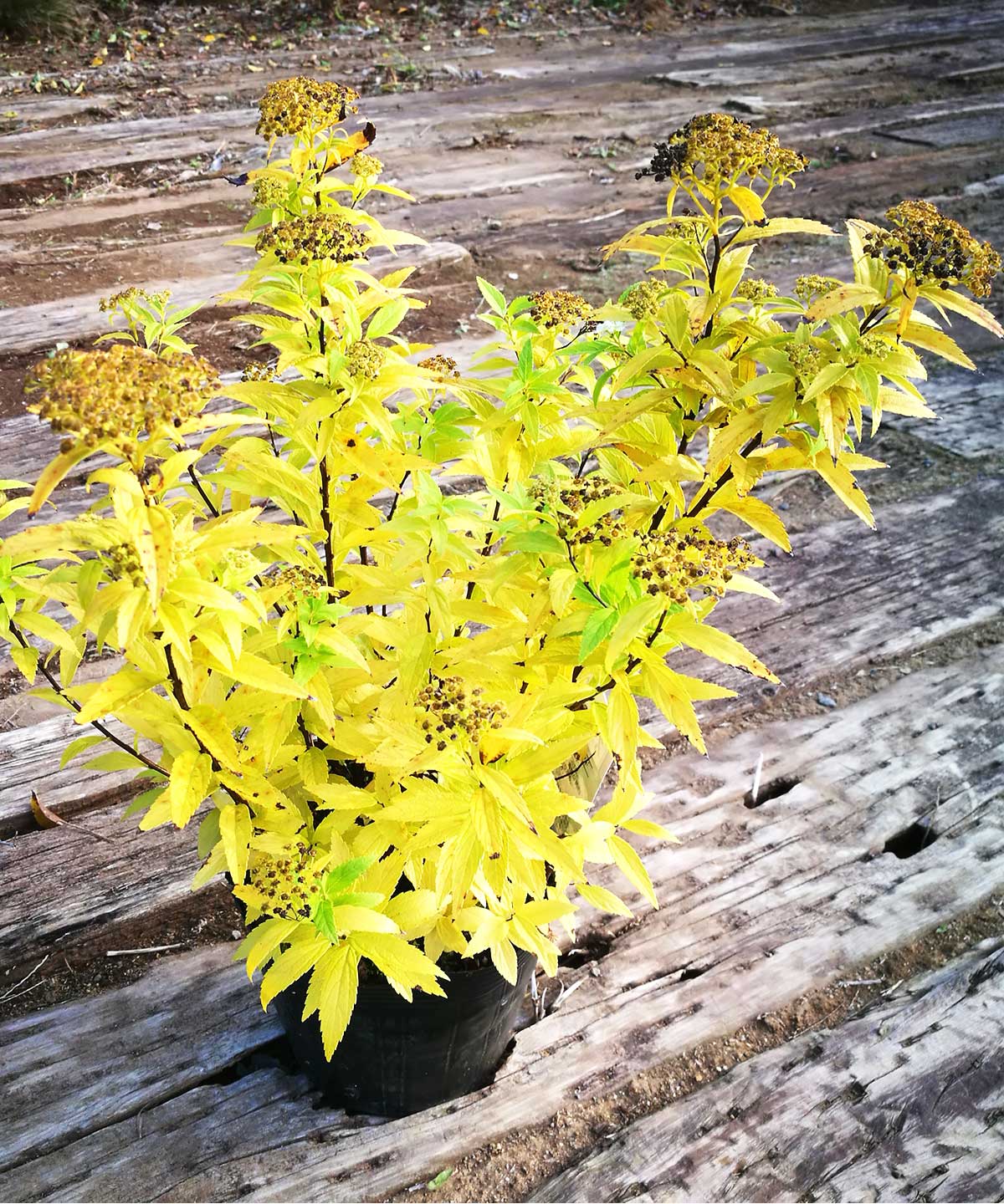 - 黄緑色の葉が美しいシモツケです。アクセントを考慮しつつ、雑木の庭の雰囲気を壊さないように白花をチョイスしました。