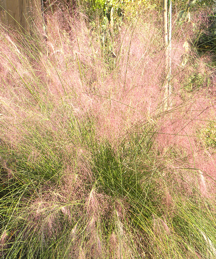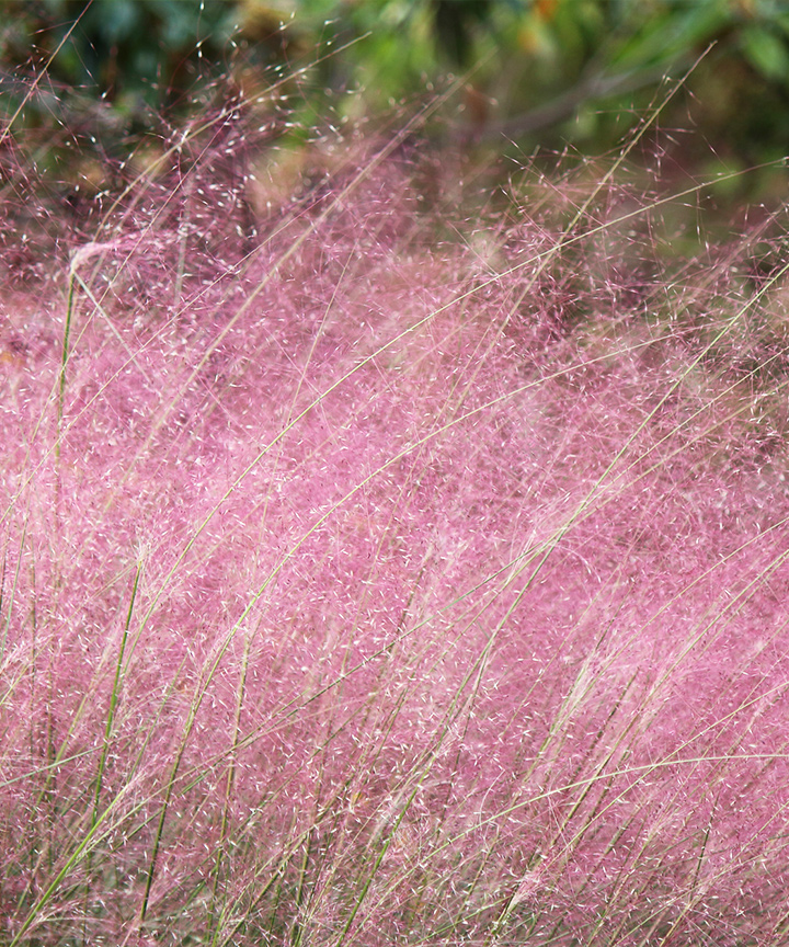 赤いふわふわとした霧のような花を咲かせます。細い葉が群生して株になるグラスの一種です。グラスは、お庭のアクセントとして存在感がありおしゃれで使いやすい植物です。