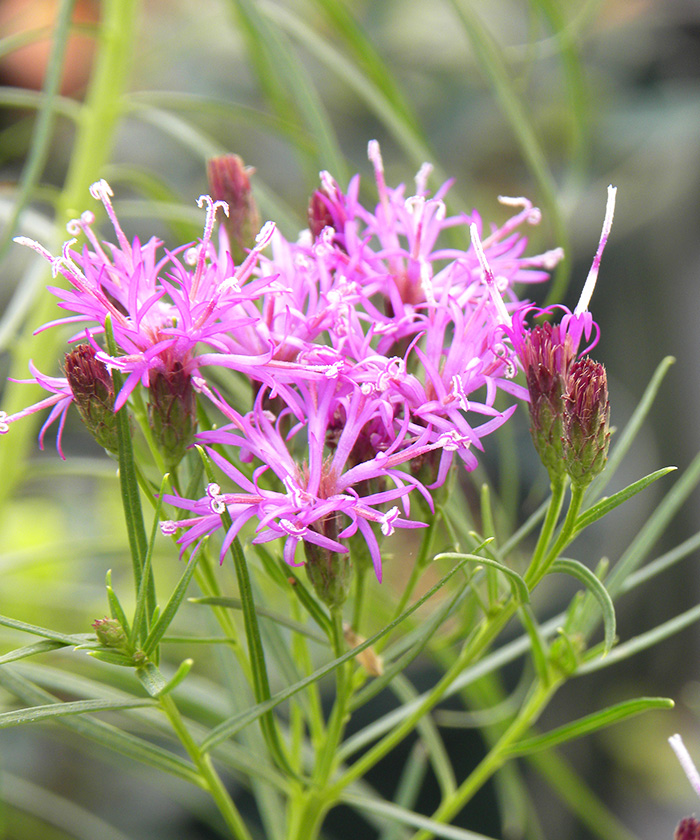 細くやわらかな美しい花と葉を楽しめる植物で、蝶が良く集まるといわれています。梅雨頃に、高さ50cm程度のところで切り戻すと、花の高さをそろえることができ見事な開花を楽しめます。冬は、落葉しドライフラワーのような趣が楽しめるのも魅力の一つです。