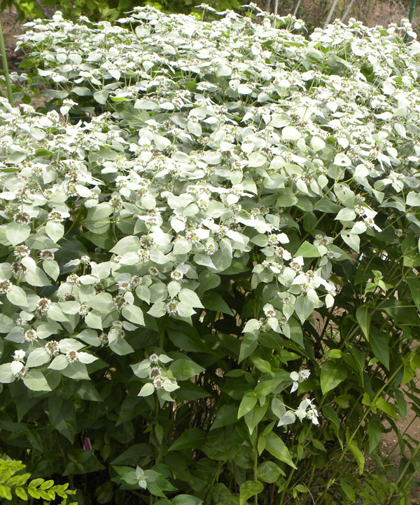 花の周りの葉がシルバーになるとても美しいミントです。花は夏に咲かせ、真夏にシルバーの葉とミントの芳香で気分を爽やかにしてくれます。