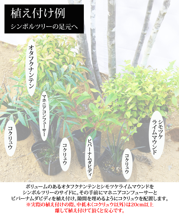 ※写真のマホニアコンフューサーとビバーナムダビディは大きくなったイメージです。配送させて頂くものはマホニアコンフューサー(10.5Lポット)、ビバーナムダビディ(9.0Lポット)となります。