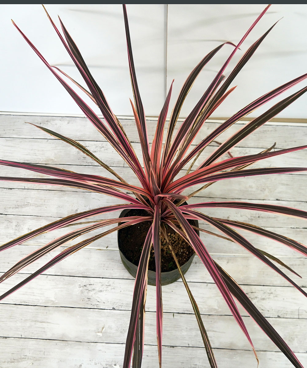 - コルジリネは、東南アジアやオーストラリアなどの熱帯原産の植物です。そのため少し寒さに弱く、露地の場合には植え付け場所に注意が必要です。コルジリネは約20種類ほどの品種があり、その中でもサルサは、シックなピンクと銅色とストライプ柄の斑が入るオシャレな色味の種類です。派手過ぎず、地味すぎない大変使い勝手の良いコルジリネと言えます。流通量はあまり多くありません。また、ドラセナとは根本的に異なる植物です。