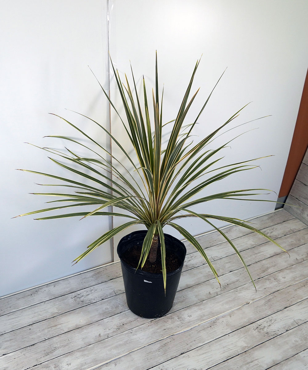 - コルジリネは、東南アジアやオーストラリアなどの熱帯原産の植物です。そのため少し寒さに弱く、露地の場合には植え付け場所に注意が必要です。コルジリネは約20種類ほどの品種があり、その中でもトーベイダイズラーはストライプの斑が美しい種類です。見た目がとてもシャープで色味が明るいため、お庭の雰囲気も明るくなります。非常に定番で人気も高いです。立派なサイズは数に限りがあるので、気になる方はぜひどうぞ。また、ドラセナとは根本的に異なる植物です。