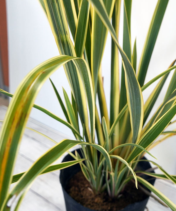 - ニューサイランはニュージーランドの固有種で、スタイリッシュな葉の形状で人気があります。その中でも斑入りのニューサイランは、太めのストライプ柄の斑が特徴的です。人目を惹きつつもお庭に明るさをもたらしてくれます。生育はブッシュ状に株が大きくなり、最終的には高さは2mほどになります。大きくしたくない場合は鉢植え管理か、都度大きすぎる葉を減らしながら管理するのもおすすめです。南国の雰囲気を持ちながら耐寒性も強く、はば広い地域で使うことができるのもうれしいポイントです。