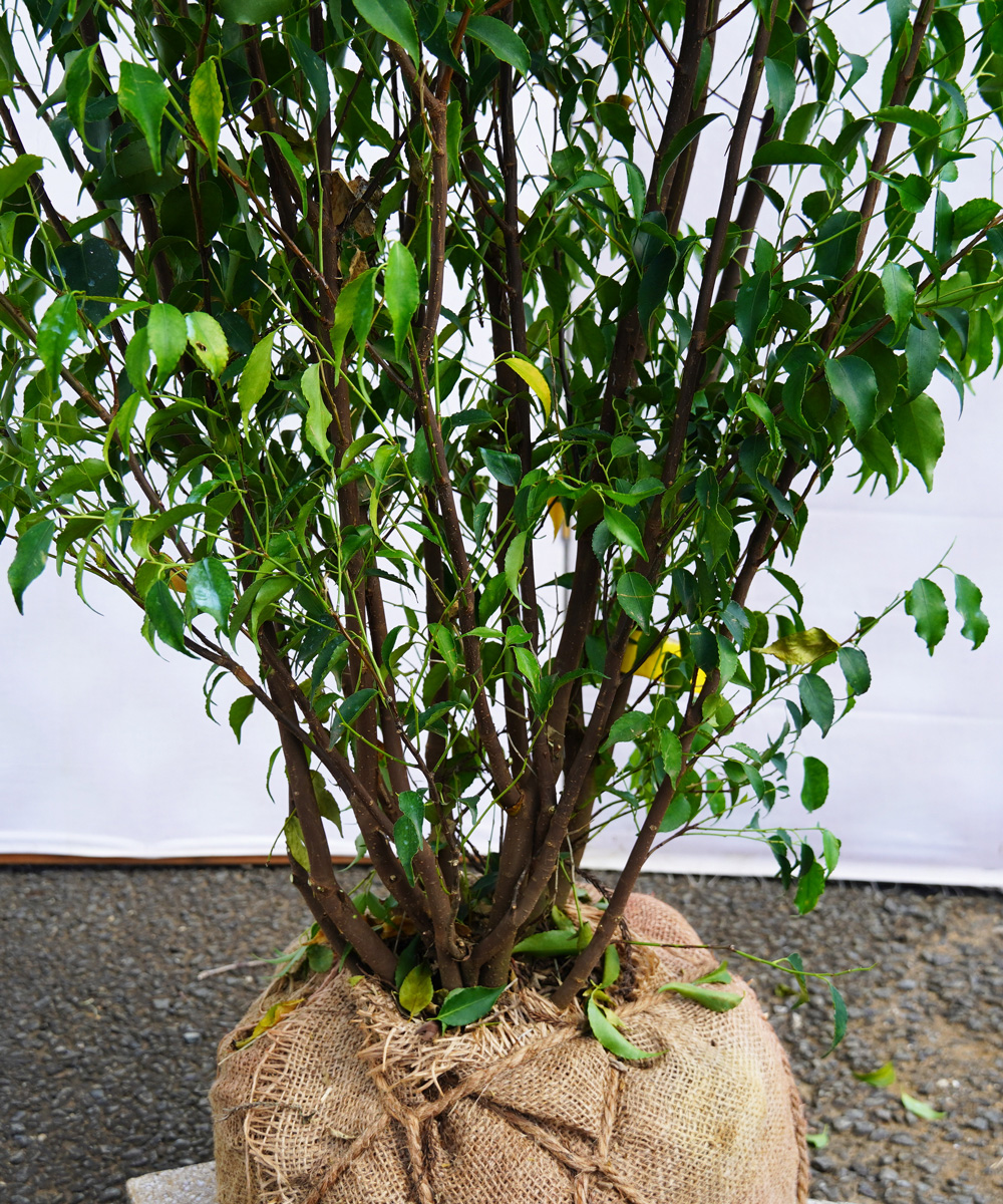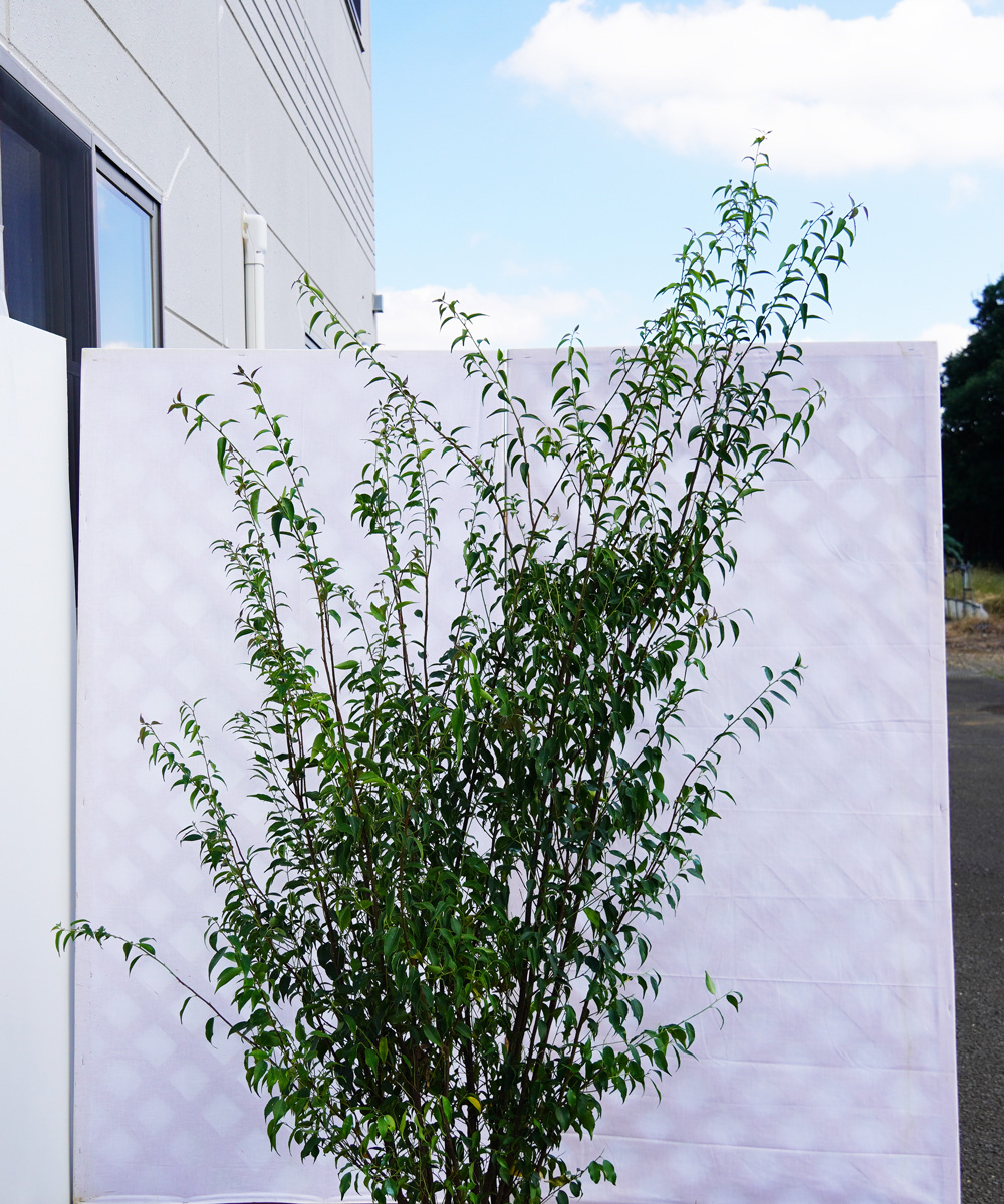 幹や葉を焼いた灰が染色に用いる 灰汁(あく)をとることから 「灰」の名前がつきました。 幹の細さと程よく小さい小葉のバランスがとても良く、その立ち姿の美しさから一目見て気に入る方が多くいます。この美しさをキープするためになるべく日陰になるところに植えてください。ボリュームのある樹形から細身の樹形まであり、植え付けの環境によって選ぶとよいでしょう。細身の樹形の方がお庭にフィットする場合も多くあるようです。少しでも日が当たる場所に植える場合は、ウッドチップなどでマルチングをしてこまめに水やりをすると美しさをキープできます。植え付け後は、木が環境に慣れるために葉を落としたり黄色くなったりしますが問題ありません。 - 鑑賞時期