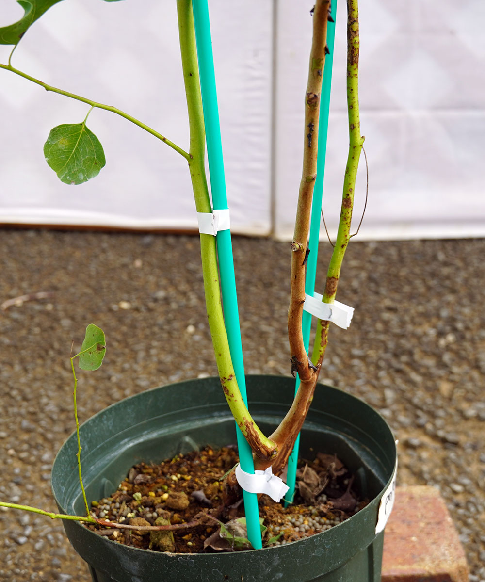 - 幹を太らせて自立させる場合は幹を切り詰めながらわき枝を立てていく。