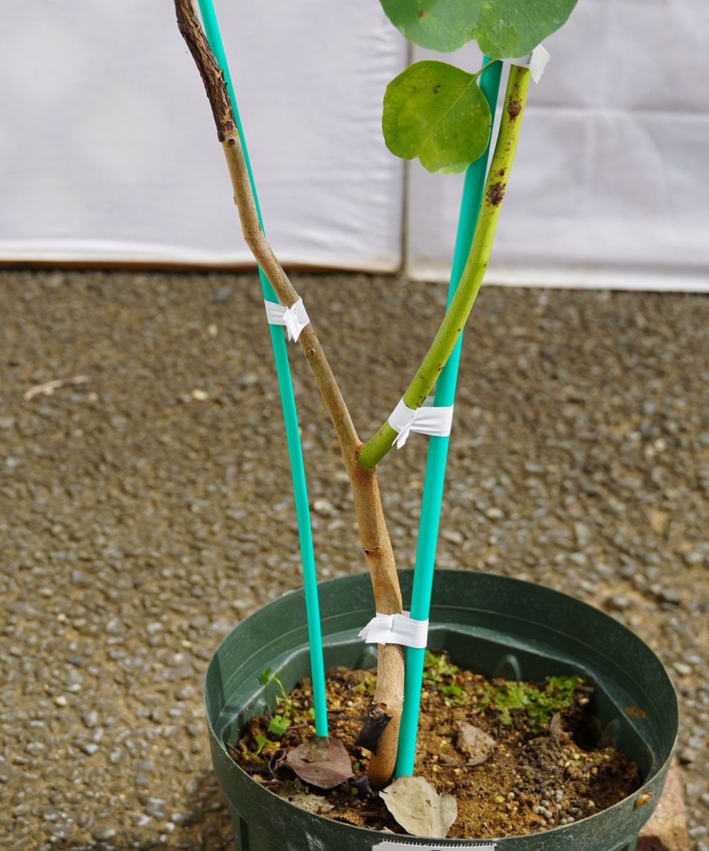 - 幹を太らせて自立させる場合は幹を切り詰めながらわき枝を立てていく。