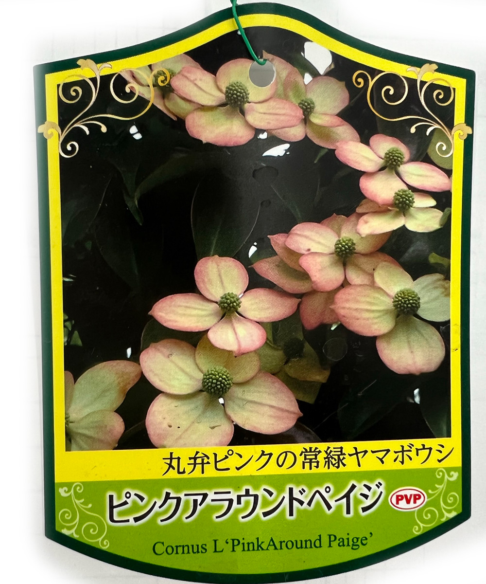 - ピンクアラウンドペイジは、丸くてピンク色のかわいらしい花を楽しむことができる常緑ヤマボウシです。