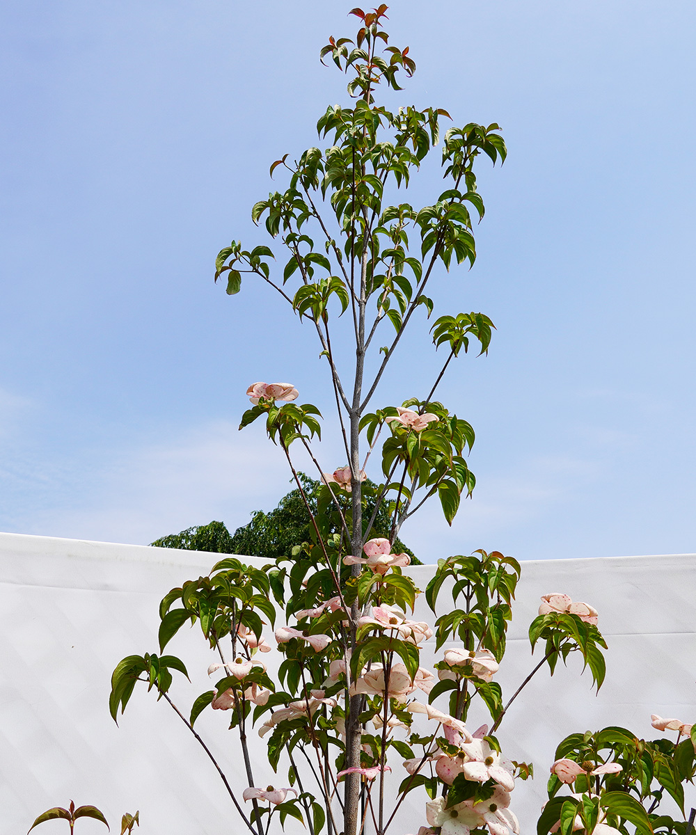 - 落葉ヤマボウシ「ダイモンレッドペイジ」は、遠くから目を惹くほどの大変鮮やかな赤い花を咲かせるヤマボウシの新品種です。花の形は、花弁(ガク)の先がとがる剣弁で、花弁同士は重なり合う少しぷっくりとした大きめの花です。また樹形は直立性で自然に美しい樹形に育ちます。こちらはパテント管理されている商品のため、生産数は限られます。植え付けて1~2年は白っぽい花が咲くことがありますが、数年で本来の色の花を楽しめます。日陰に植えると、花付きが悪くなることがあります。