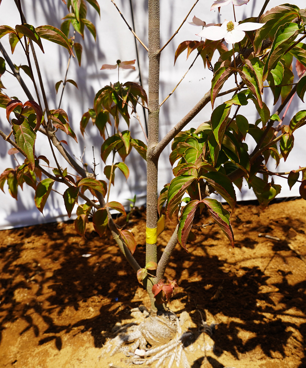 - ヤマボウシ「ベニフジエス」は、鮮やかな赤い花を楽しむことができる落葉のヤマボウシです。花は大きく過ぎず小さすぎず程よい大きさで、小さいなうちから花付きが良く、植えてすぐに花を楽しむことも可能です。また樹形は柔らかい雰囲気が特徴で、従来のヤマボウシよりもさわやかな印象になります。こちらはパテント管理されている商品のため、生産数は限られます。本来赤い花のヤマボウシは、植え付けて1~2年は白っぽい花が咲くことがありますが、このベニフジエスはその傾向が少なく、植え付け後も赤が濃く出やすい品種です。日陰に植えると、花付きが悪くなることがあります。
