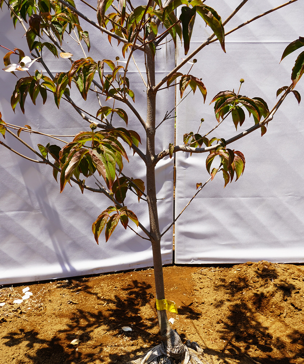 - ヤマボウシ「ベニフジエス」は、鮮やかな赤い花を楽しむことができる落葉のヤマボウシです。花は大きく過ぎず小さすぎず程よい大きさで、小さいなうちから花付きが良く、植えてすぐに花を楽しむことも可能です。また樹形は柔らかい雰囲気が特徴で、従来のヤマボウシよりもさわやかな印象になります。こちらはパテント管理されている商品のため、生産数は限られます。本来赤い花のヤマボウシは、植え付けて1~2年は白っぽい花が咲くことがありますが、このベニフジエスはその傾向が少なく、植え付け後も赤が濃く出やすい品種です。日陰に植えると、花付きが悪くなることがあります。