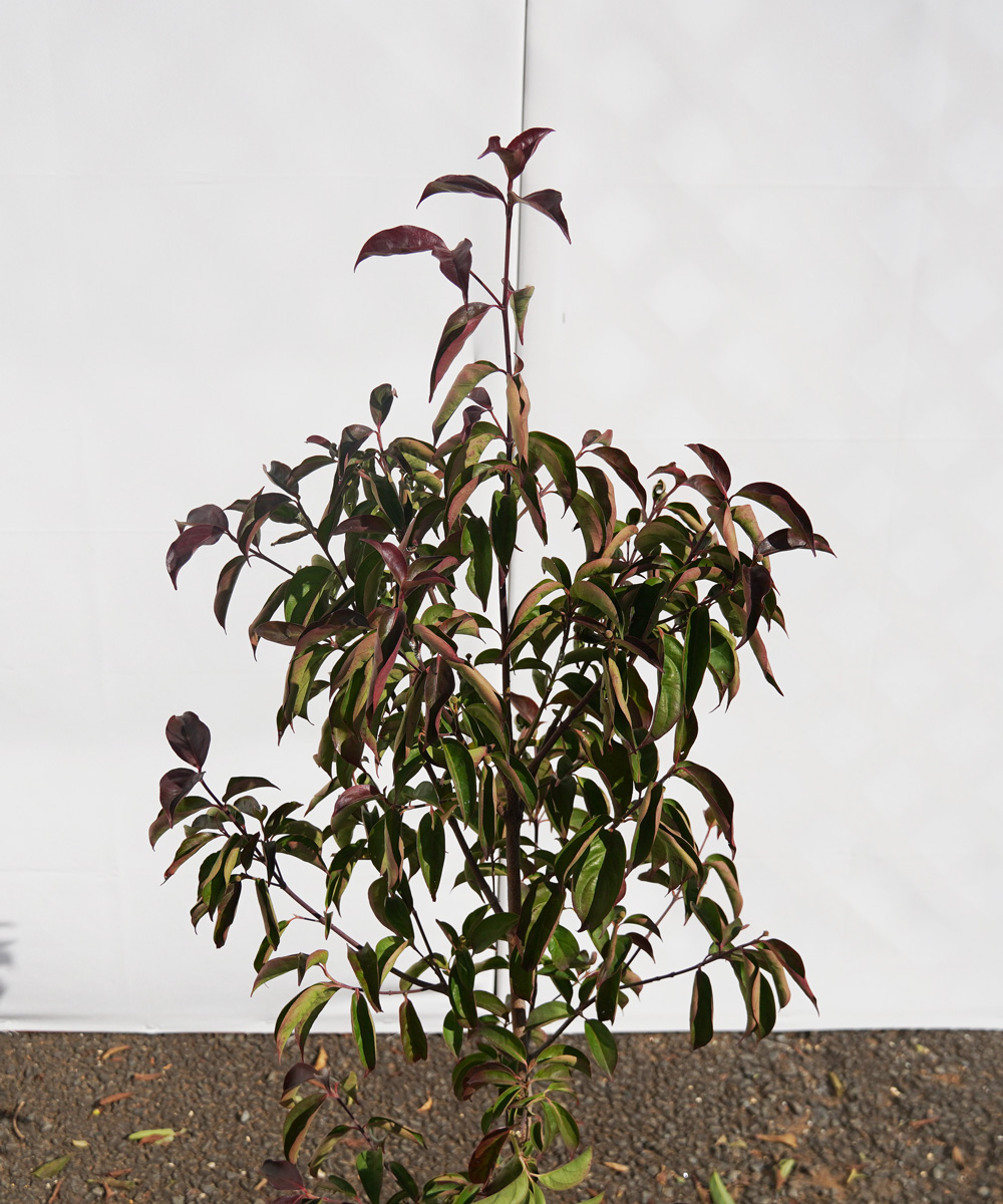 - この常緑ヤマボウシは春の新芽が赤くなる新しい品種です。5月頃の真っ赤な新芽と白い花を楽しむことができます。花は春のみの一季咲です。冬は常緑ヤマボウシの特性上、葉っぱが霜にあたると赤紫色に変化します。この品種は赤い色素が強いためか、発色もきれいです。(冬紅葉の色味は、地域により変化します。)