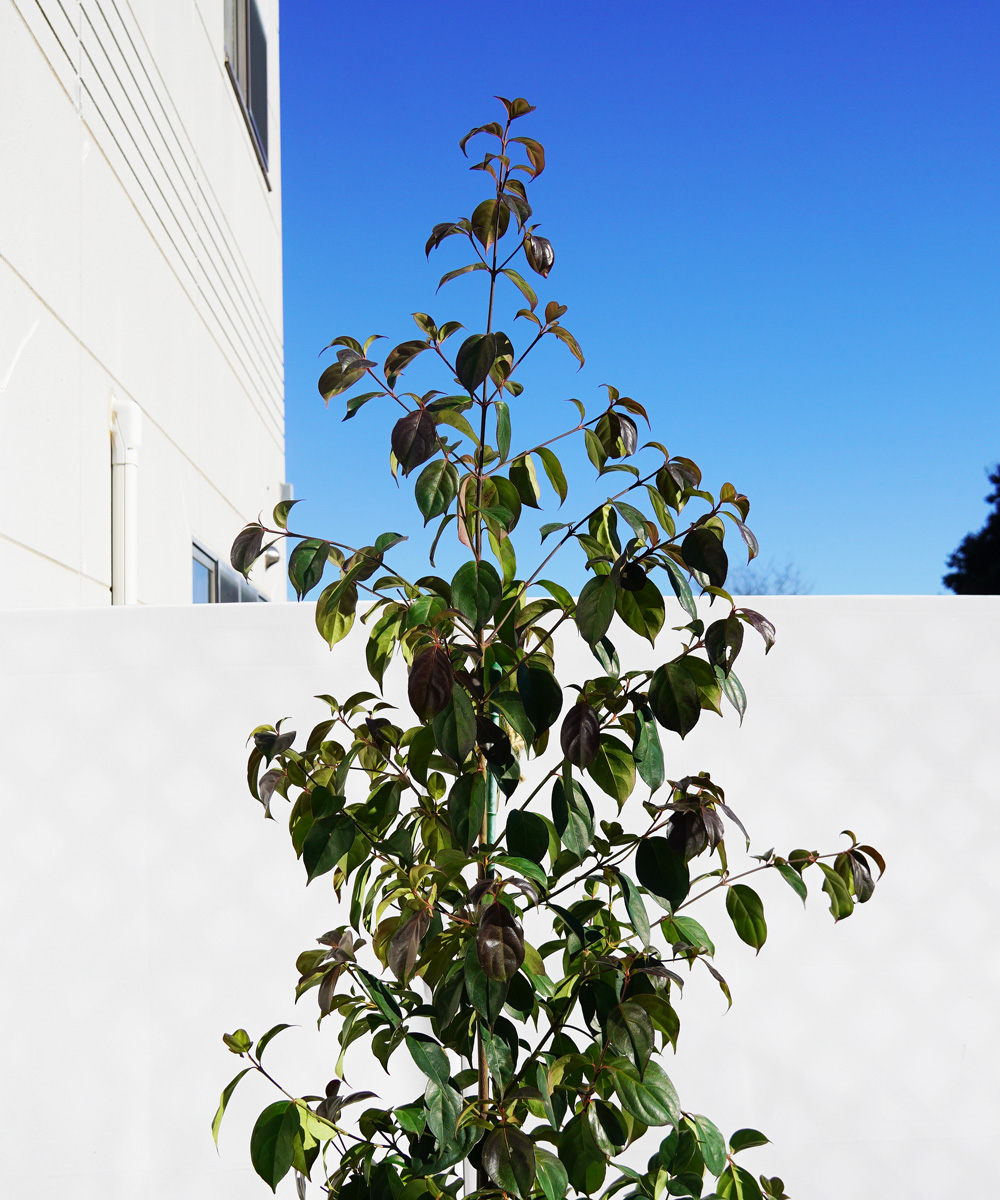 こちらは耐寒性は-5~-7度程度で、常緑ヤマボウシの赤花品種の中では耐寒性は強い方です。ですが冬に北西の風が吹き抜ける場所は注意が必要です。