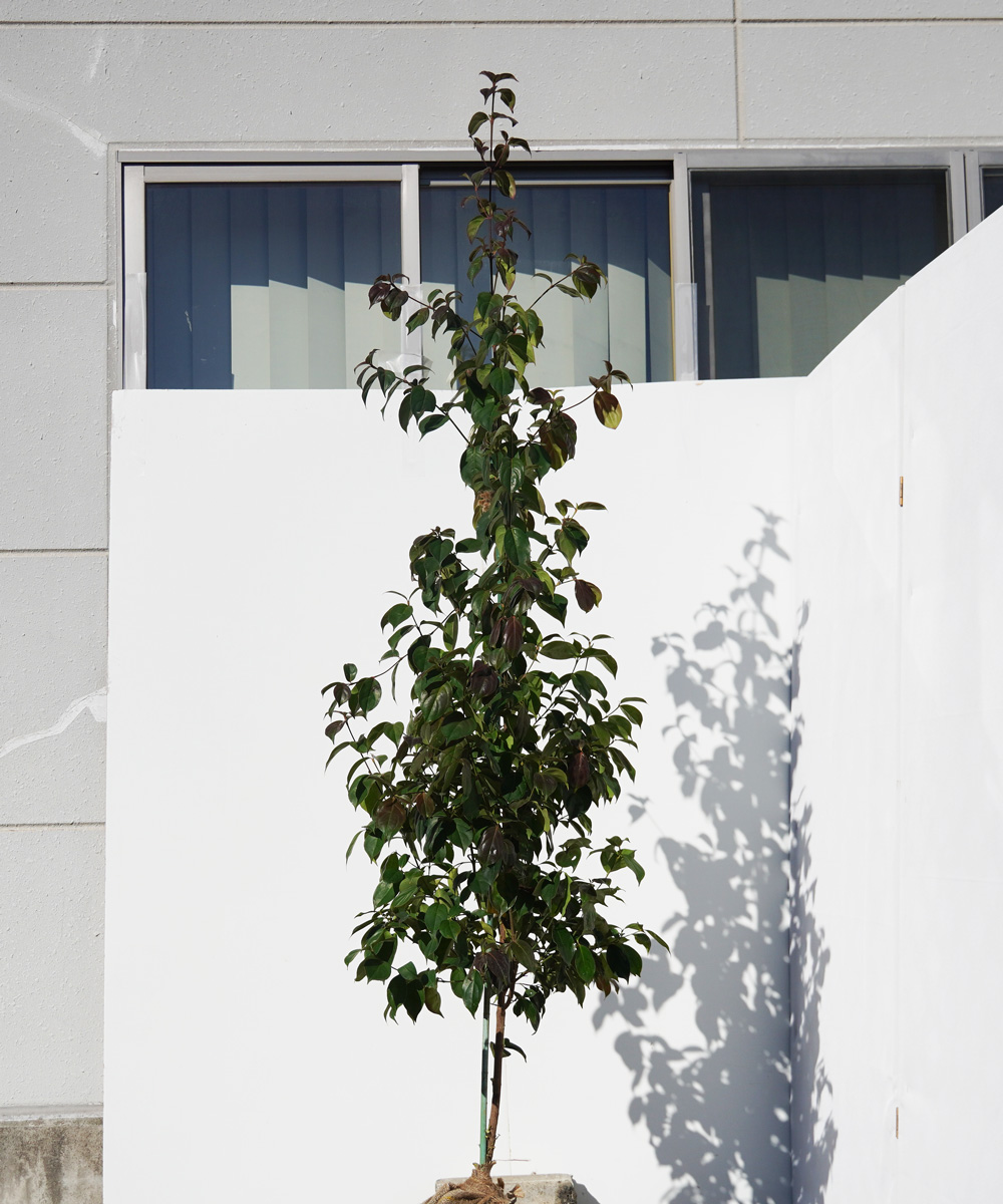 こちらは耐寒性は-5~-7度程度で、常緑ヤマボウシの赤花品種の中では耐寒性は強い方です。ですが冬に北西の風が吹き抜ける場所は注意が必要です。