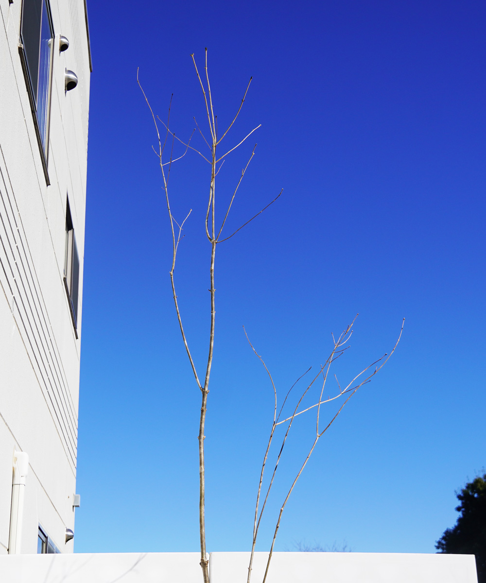 - 株立ちなど自然樹形に育てたい場合は、下の枝と横に伸びる太い枝をを少しずつ切り落としながら育てる。