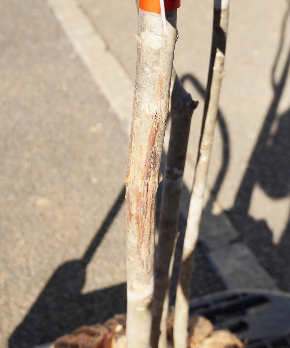 アオダモの山採りものは、幹につく斑紋も魅力です。幹に浮かび上がるような白い模様を楽しむことができ、これは木ごとにつき方が変わります。