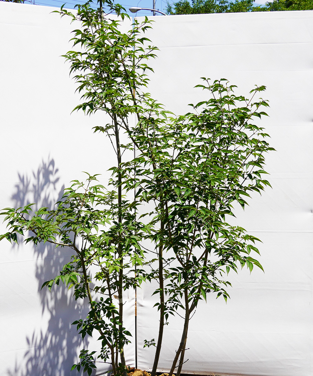 - 別名コバノトネリコと言います。アオダモは幹はしなやかで、すらっと伸びやすく樹形も端正で整いやすいのが特徴です。特に特徴的な花や実はつきませんが、その細かくて涼し気な葉と端正な樹形に高い人気があります。寒冷地から暖地までの植栽にも耐え日向から日陰まですくすくと育ちます。端正な樹形と葉が小さく爽やかな印象を与えてくれます。