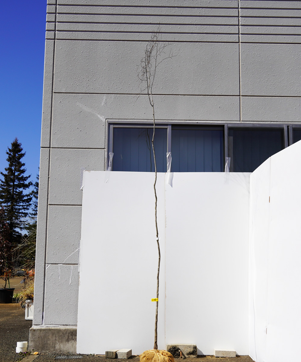 - 苗木の頃は、斜めに傾きやすいため、支柱を添えるなどしてまっすぐにします。そのあとは、放任でも自然と樹形が整っていきます。