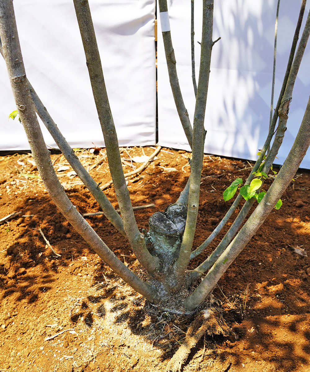 - 株立ちなど自然樹形に育てたい場合は、下の枝と横に伸びる太い枝をを少しずつ切り落としながら育てる。