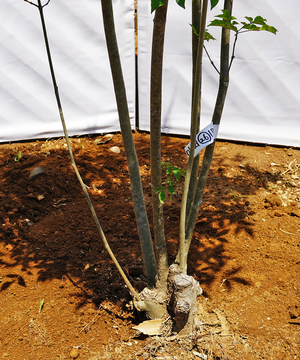 - 株立ちなど自然樹形に育てたい場合は、下の枝と横に伸びる太い枝をを少しずつ切り落としながら育てる。