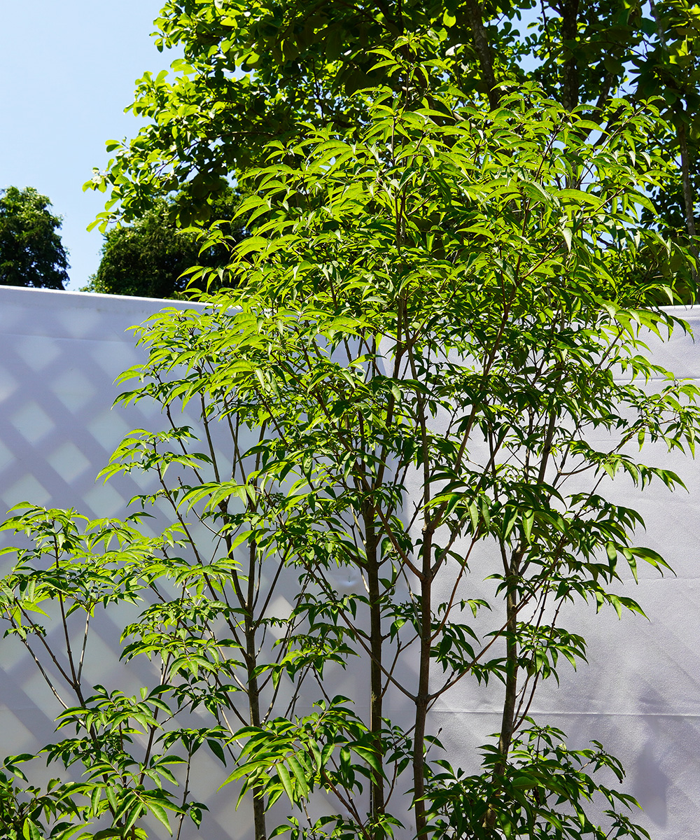 - 別名コバノトネリコと言います。アオダモは幹はしなやかで、すらっと伸びやすく樹形も端正で整いやすいのが特徴です。特に特徴的な花や実はつきませんが、その細かくて涼し気な葉と端正な樹形に高い人気があります。寒冷地から暖地までの植栽にも耐え日向から日陰まですくすくと育ちます。端正な樹形と葉が小さく爽やかな印象を与えてくれます。