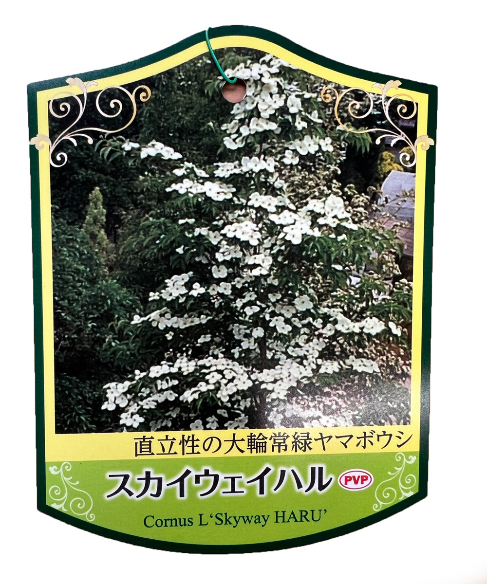 - 常緑ヤマボウシ「スカイウェイハル」は、花付きの良い大きめの花と美しい樹形が楽しめる常緑ヤマボウシです。
