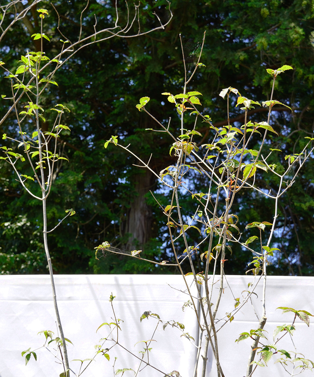 - 株立ちなど自然樹形に育てたい場合は、下の枝と横に伸びる太い枝をを少しずつ切り落としながら育てる。