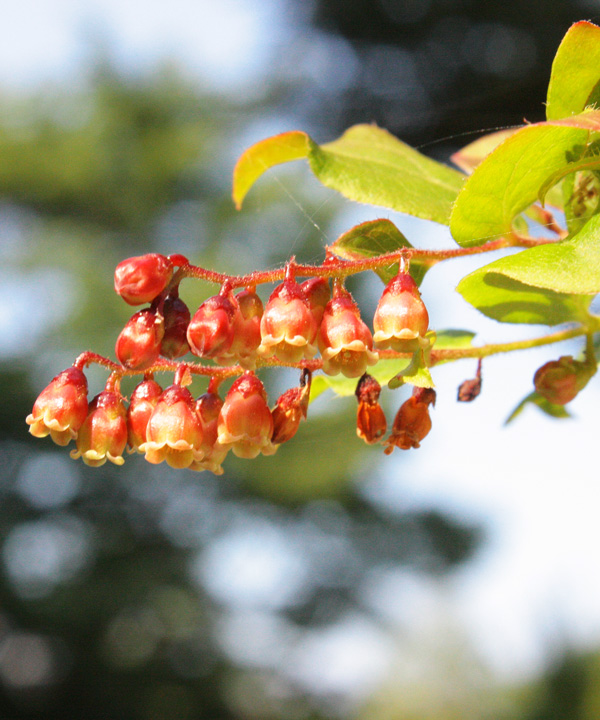 - ナツハゼは、花、実、紅葉を楽しむことのできる植木で、曲がりくねる樹形が趣があり人気です。山の風合いの樹形と見事な紅葉が見どころですが、その他、花と実も十分な魅力があります。花は鈴蘭状にたくさんつけ、オリエンタルな色合いをしています。また、実もたくさんつけ鑑賞価値があります。実は目に良いとされるアントシアニンを多く含み、食せますが、食味は酸味が強すぎておいしいとは言えません。ジャムやリキュール漬けがオススメです。 日本の里山に自生し、雑木のお庭の木として人気があります。背が高くなりにくいため、他の木を引き立てるサブツリーとして植えるのが良いでしょう。
