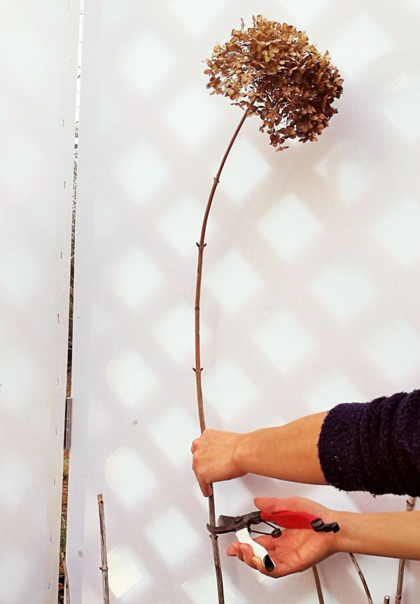 アナベルの弱剪定は、少しだけ株を小さくしたい場合に行います。
