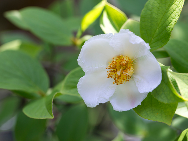 ナツツバキは、滑らかな質感のある美しい幹と、5~6月頃に咲く大きくて存在感のある白い花が魅力的な樹木です。