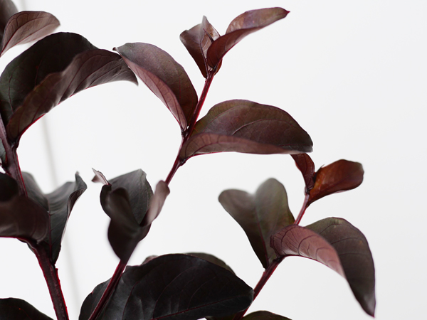 ブラックパールは、アメリカで誕生した新しい種類のサルスベリです。特徴はその名の通り、葉が黒く表面に真珠のような光沢。