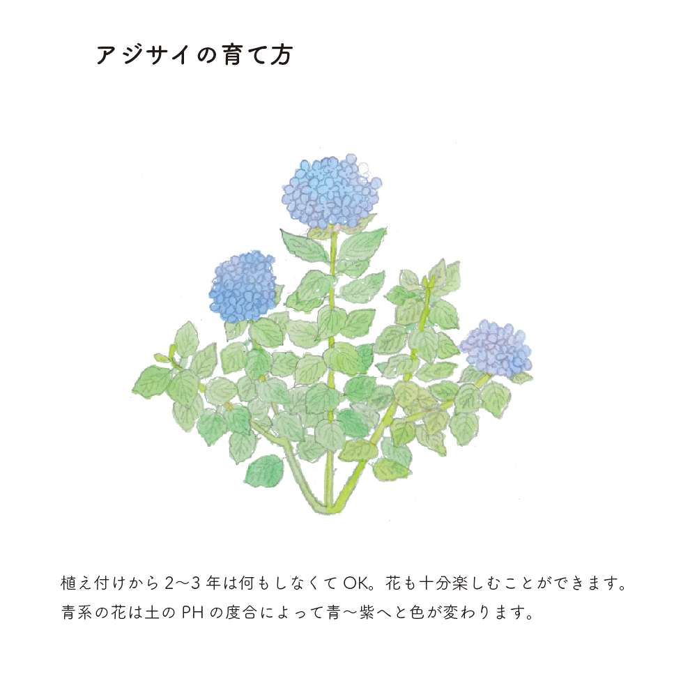 共通する特徴として、青系の花は土壌のPHによって変化し、赤から青への変化を楽しむことができます。